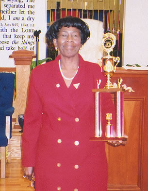 Pastor's Tribute: St. Z. Simmons presents a trophy to the "Top Granny" Apostle Johnson Focuses on Youth